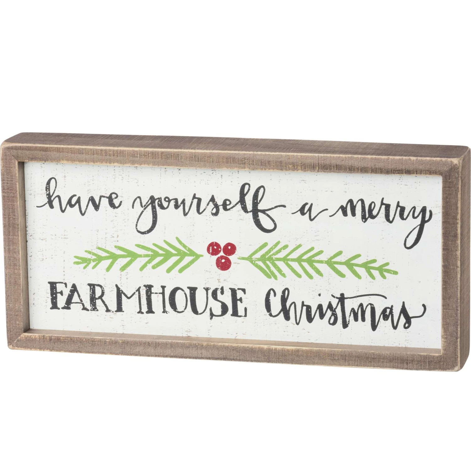 - This Farmhouse Christmas Inset Box Sign features the sentiment “Have Yourself A Merry Farmhouse Christmas”, holly designs, and natural wood trim. Easily hangs or free standing.