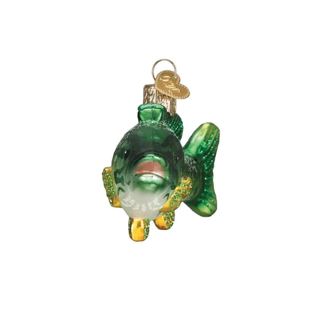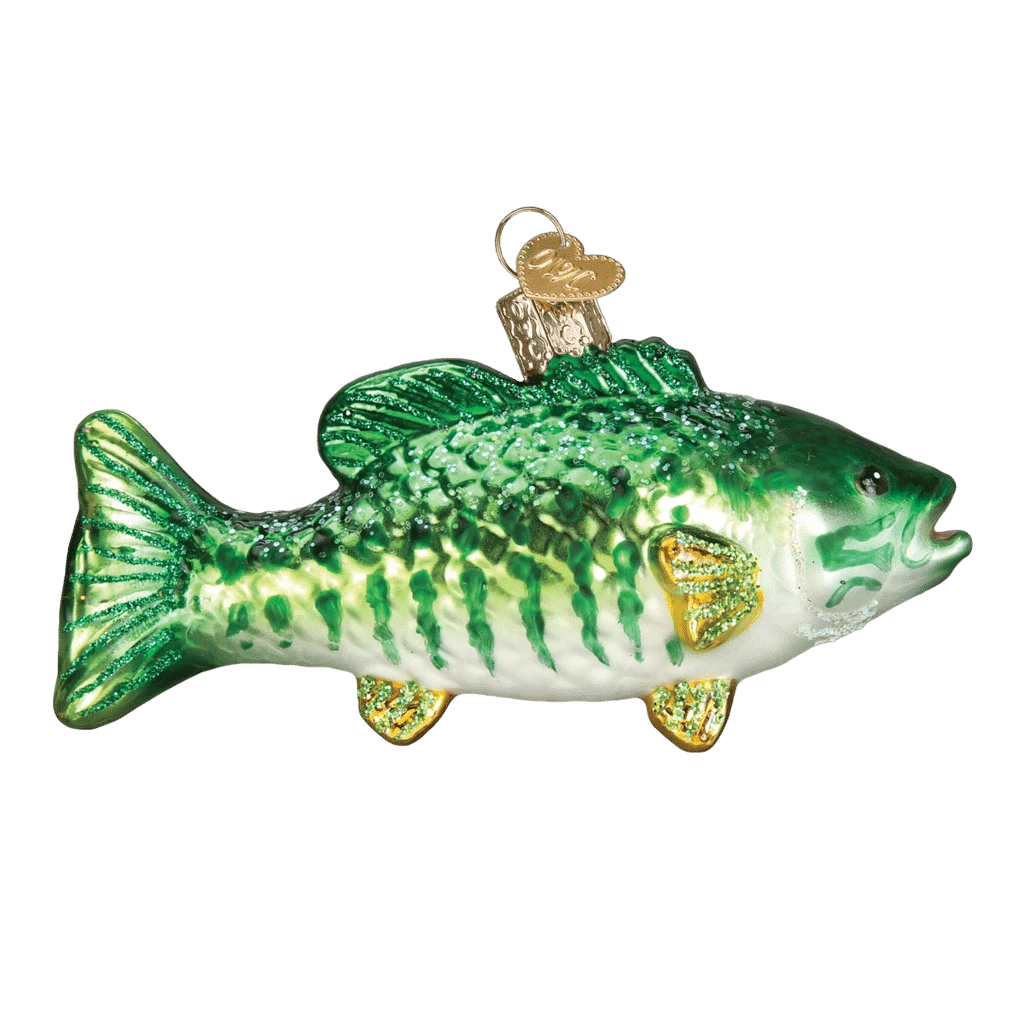 This cousin of the Largemouth Bass has many nicknames, including Smallie & Bronzeback; it is the most trout-like bass, and is an “ambush” predator. This freshwater fish prefers flowing streams & rivers with rocky bottoms (versus still lakes, preferred by the largemouth). Our Smallmouth Bass blown-glass ornament is a great gift for your fisherfolk!