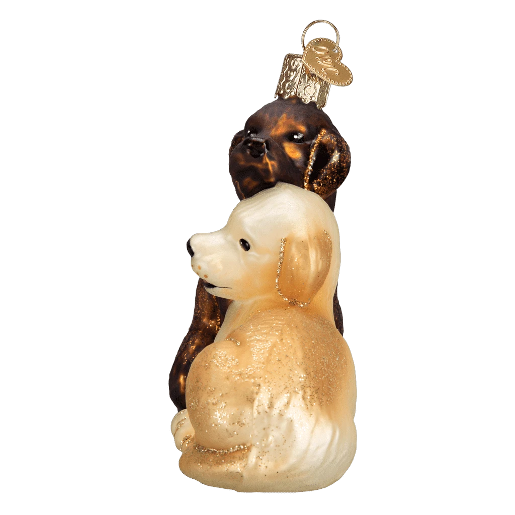 As devoted companions, dogs are loving, loyal and intelligent, and as puppies they are also playful and adorable. These delightful hand-painted and glittered glass puppies have become playmates, and will stay forever young as a delightful keepsake for your tree.