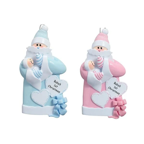 Santa Baby’s 1st Christmas Ornaments Personalized. Celebrate a new little bundle of joy and personalize this Santa cuddling baby ornament in pink or blue to cherish year after year!