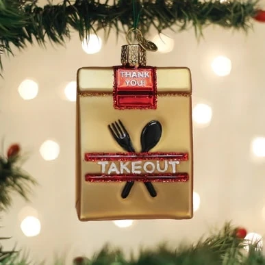 Takeout Bag Ornament. Takeout, carry-out, to-go, grab-n-go, takeaway. No matter what it is called, some meals call for bringing home prepared food to eat in the comfort of your own home. Chefs prepare delicious food and place it in takeout bags for patrons to take home and enjoy.